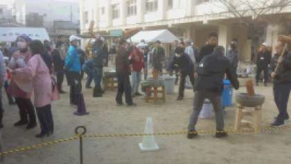 今日は本校校庭にて、地域の皆さんによる「もちつき大会」が行われます。