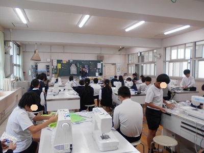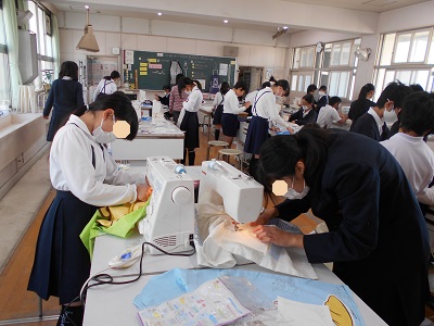 ミシンの針に糸を通したり、下糸が絡まったり、慣れない作業に苦労している様子もみられました。