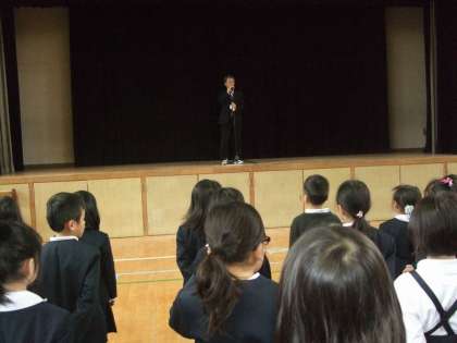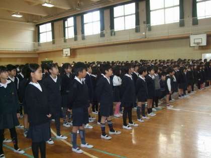 25日に全校児童が講堂に集まり、2学期の終業式を行いました。