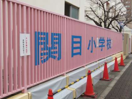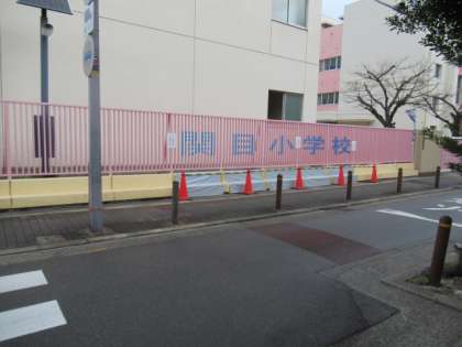 少し斜めからみると、くっきり「関目小学校」と校名がみえます。