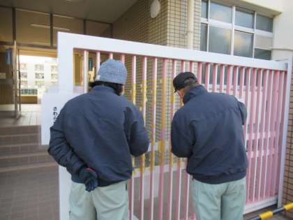 昨日マスキングの作業が終わって、今日は朝からペンキで色塗りをしてくださっています。