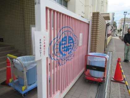 少し横からみてみると関目小学校の校章がきれいに見えます。