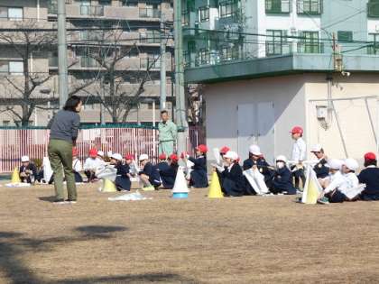 お友達とぶつかっつたり、糸がからまったりして泣いちゃう子は一人もいなくて、トラブルなくみんな上手にたこを高くあげれました。