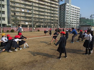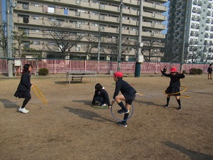 つなひき、缶ぽっくり、すもう、フラフープ、たま入れ、などなど、身体を使った遊びをめいっぱい楽しむことができました。