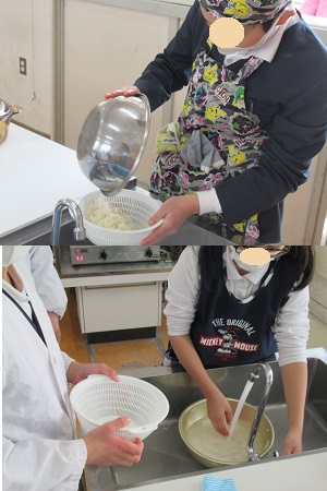 お米を洗っています。