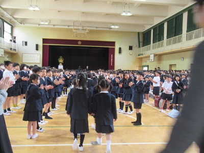 1年生を、2年生から6年生のみんなでお迎えしました。