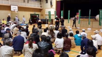 今日の午後7時から、本校講堂にて地域防災訓練が行われました。