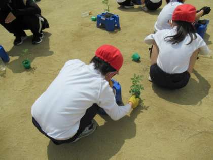 5月15日 2年2組 ミニトマト苗植え
