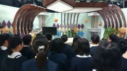 館内では、日頃見ているテレビの裏側の様子を中心に見学させてもらいました。いつも見慣れているテレビの裏側ということで、興味津々に係りの方の話を聞き、メモをしていました。