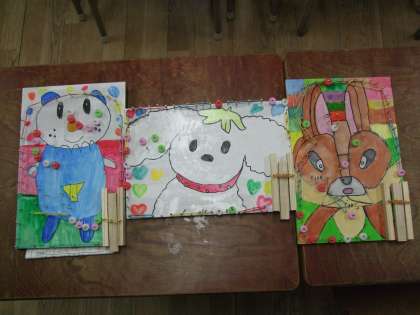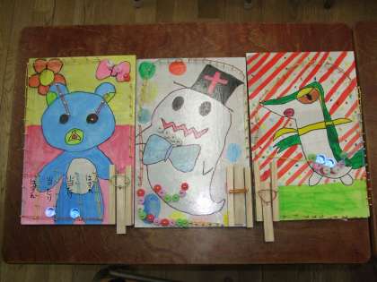 台板の白い面に絵をかき、くぎをトントントントン打っていきます。