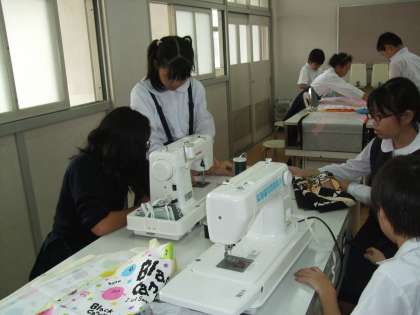 5年生は家庭科で「エプロン作り」をしています。初めてのミシンの実習。世界に一つのエプロン作り!完成が楽しみです♪