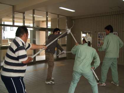 児童下校後は、教職員に不審者侵入に際しての心構えや防御に仕方、さすまたの使い方など実践に即した研修もしていただきました。