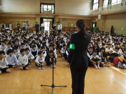 全校児童に向けて城東警察の方から「お・は・し」の約束を守って素早く行動することの大切さなどの話がありました。