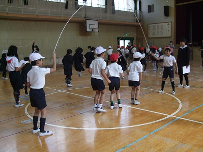 今日は、1・2・3年生による炎のなわとび大会が行われました。