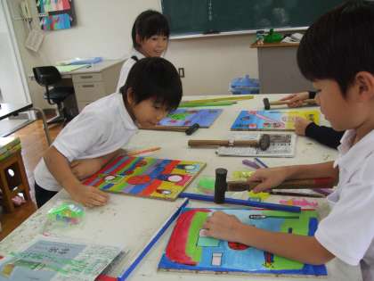 図工室からトントントンくぎ打ちの音が聞こえてきました。