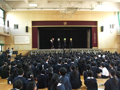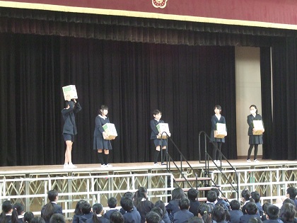 5つの箱の中のどれか一つに物が入っていて、その箱を当てるゲームです。集会委員会の上手な演技で、今回は全問正解の班は1つもありませんでした!