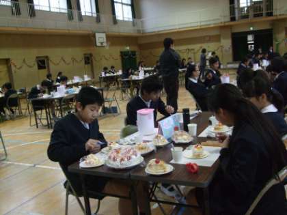 会話を楽しみながら、自分たちで作ったケーキをおいしくいただきました。