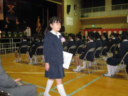 卒業証書授与では、担任から一人ずつ名前を読み上げられると大きな声で「はい」と返事をし、自分の思いや夢を発表していました。