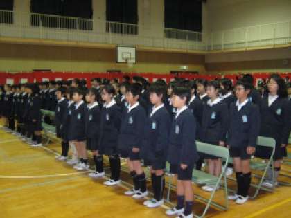 「別れのことば」では、卒業生全員が舞台前のひな壇に整列して、6年間の思い出や感謝の言葉を講堂内いっぱいに響く声で語りました。