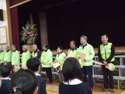 児童代表がお礼の言葉を述べ、全児童で作成したお礼の手紙を