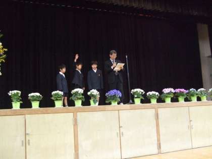 講堂で全校児童が集まって、1学期の始業式を行いました。