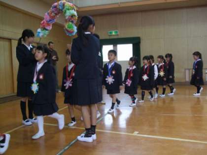 会が終わり大きな拍手におくられて、ニコニコ顔の1年生が