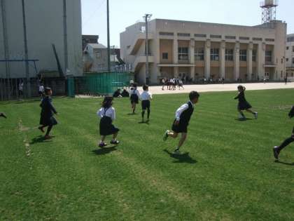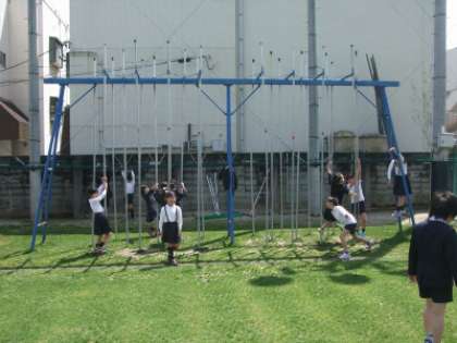 芝生の上で、元気よくサッカーや鬼ごっこをして遊んだり、のぼり棒の練習に励んでいます。