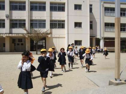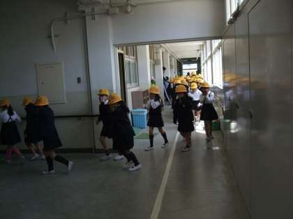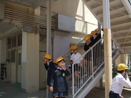 避難するときは「おさない、はしらない、しゃべらない、もどらない」の「お、は、し、も」をしっかりと意識するように指導していただきました。