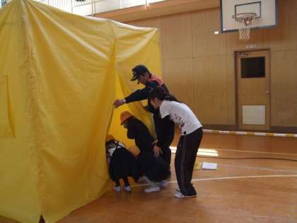 子どもたちはその中に入り、障害物をよけながら進んでいくというものでした。