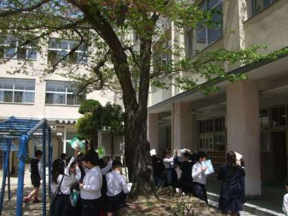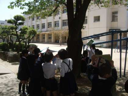 4年生は、理科の「春の生き物」という単元でさくらの木の観察をしています。