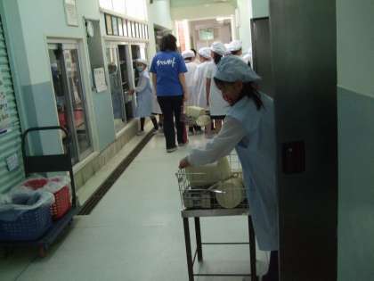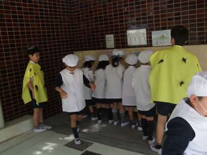 給食委員会は、給食時の運搬の手伝いや献立紹介の放送。