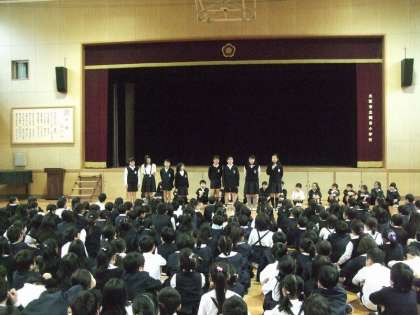 今日の児童集会は、学級代表、各委員会の委員長、運営委員会からのあいさつでした。