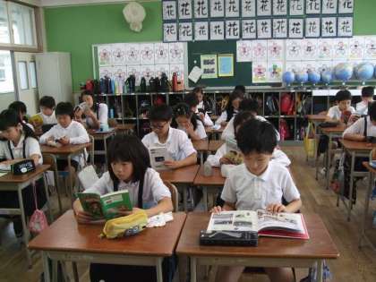国語学習の一環として関目小学校では、毎週水曜日の朝の学習を