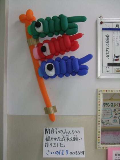 給食室前の廊下に給食調理員さんが、子ども達の成長を願って