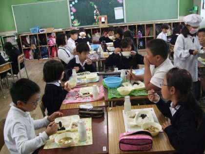 今日の献立は、豚肉のしょうゆマヨネーズ焼き・けんちん汁・のりのつくだ煮・ご飯・