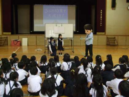 子ども達が興味関心を持てるよう、着ぐるみやVTRの視聴などを