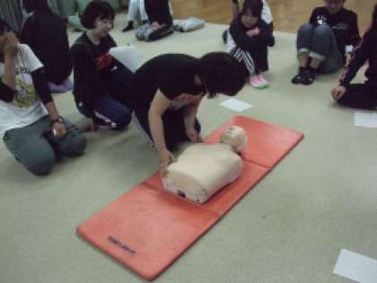 AEDの使い方、胸部圧迫、人工呼吸の方法など、実践を交えて学ぶことができました。