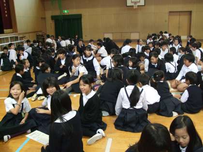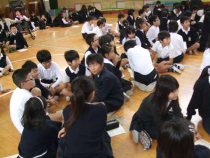 中には、講堂内の先生方を見て、「○○先生はいるけど、△△先生はいないで。」と消去法で考えている班もありました。