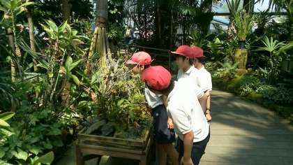児童たちは様々な色や香り、見た目の中からお気に入りの花を見つけているようでした。全校遠足のオリエンテーリングでたてわり班のリーダーたちとして支えてくれた5・6年生もいろいろな花を見学することで、学びとともにひとときの癒しの時間を過ごすことができました。