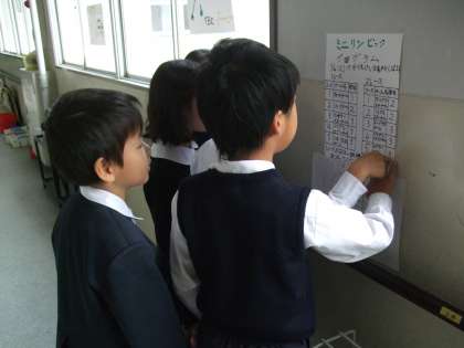 運動委員会から、芝生運動場で主催するミニリンピックのレース表が発表されていました。