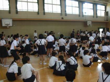 関目小学校についての○×クイズだったので、児童も盛り上がりました。最後には先生の血液型は何型でしょう?という超難問が出たので、児童も真剣に悩んでいる様子でした。