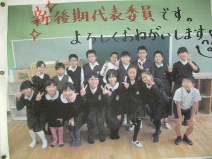 児童会の掲示板に後期代表委員の写真が張り出されていました。