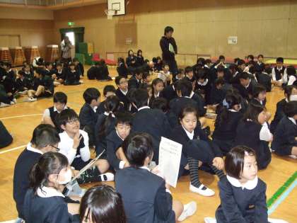 学校生活でよく見かける「ざる」「鍵盤ハーモニカのふき口」などだったので、スクリーンに写し出されると、すぐにわかったとばかりに「あ〜あ!!!」と声があがりました。