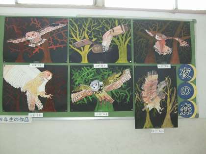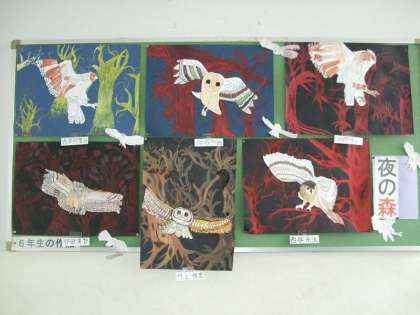 フクロウやミミズクなど夜中に活動する鳥類をかきました。