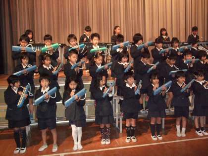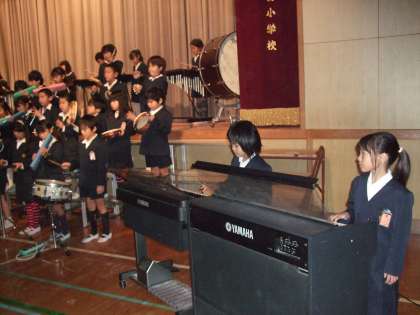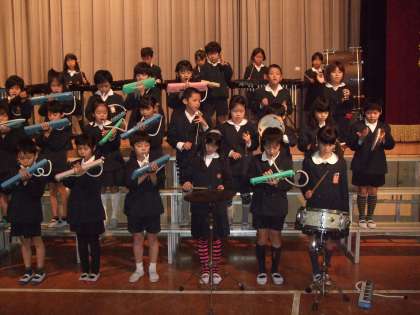 電子オルガン・マリンバ・鉄琴・大太鼓などを使い、リズムにのって演奏していました。