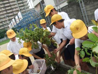 理科の「植物のつくり」の学習を進めるために植えたジャガイモの