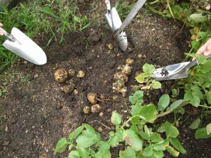 育ったおかげで大人の握りこぶし大の大きさのジャガイモをたくさん収