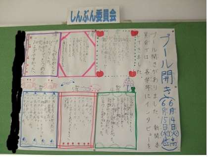 1年生から6年生にプール開きの感想を取材して、まとめています。