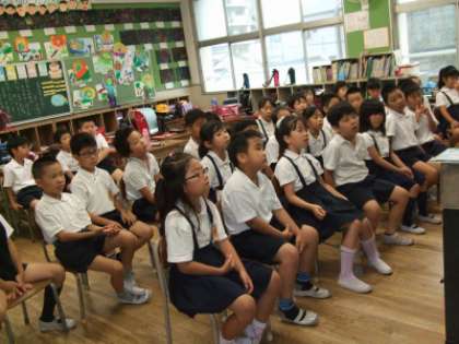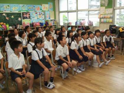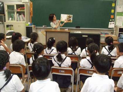 きょうは、1・2・3年生の学級で「おはなしビスケット」の