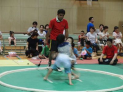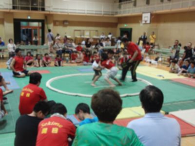 午後6時より、本校講堂で地域活動協議会主催の「子ども相撲大会」が開催されました。昨年は、講堂の天井改修工事の関係で9月に行われましたが、今年は従来通り7月に開催されました。